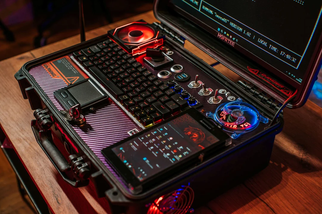 My goal for this project is to create a personal cyberdeck. This blog post gives a good summary of the history of cyberdecks and why they are so cool. I really like the idea of having a medium sized portable machine that you have built yourself. It feels like a techy form of self expression which I really like. Because of the nature of computers you really can design it and build it however you want with a few requirements. Some people make them big and bulky and powerful with a ton a bells and whistles. source