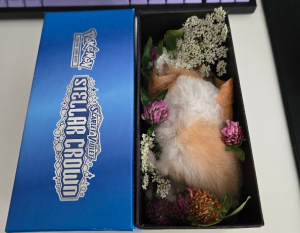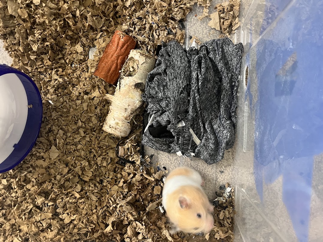My first hamster passed away this morning. Her name was Hammer because she broke out of the box we bought her in within 3 minutes of putting her in the car. We got her on August 5th 2023, so she lived a bit more than two years long. We originally got her to cheer up my girlfriend, who was going through some rough times, but she ended up being pretty important to me. I remember saying that we would only get her if she took care of cleaning her and everything, but somehow I started to clean her more. I grew pretty attached to just having her around, even if I didn’t interact with her every moment. Her presence really did bring life to our dorm room. Randomly hearing her run on her wheel in the middle of the night brought presence to our room when sometimes if felt kinda empty.